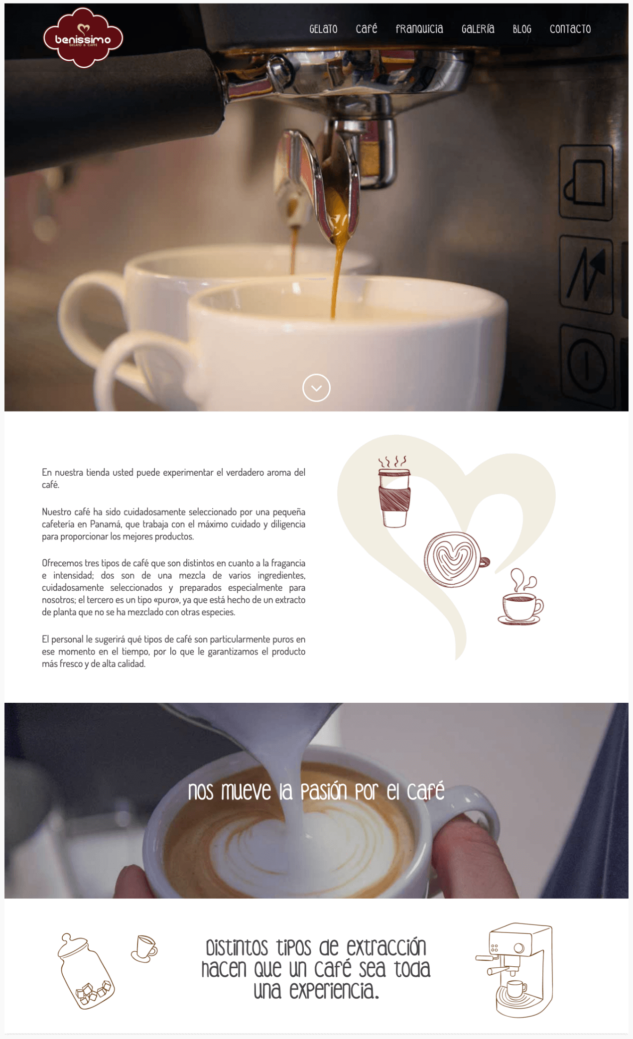 The goal was to design a website that looks cozy and present their business franchise model, well-designed spaces, and high-quality coffee on different coffee brewing methods and Italian style gelato. the site should be eye-catching and playful but serious at the same time.